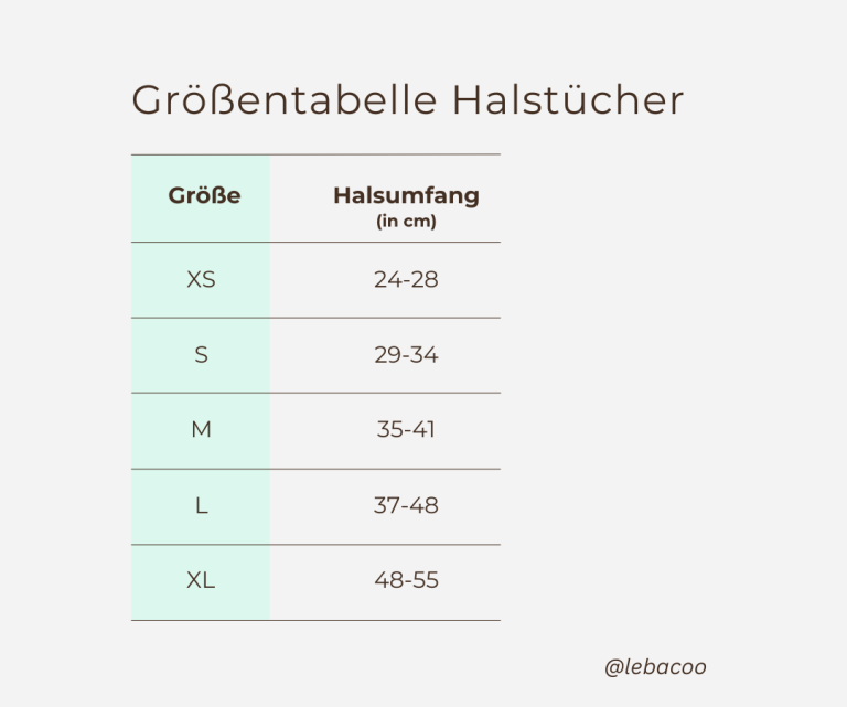 Größentabelle Halstücher